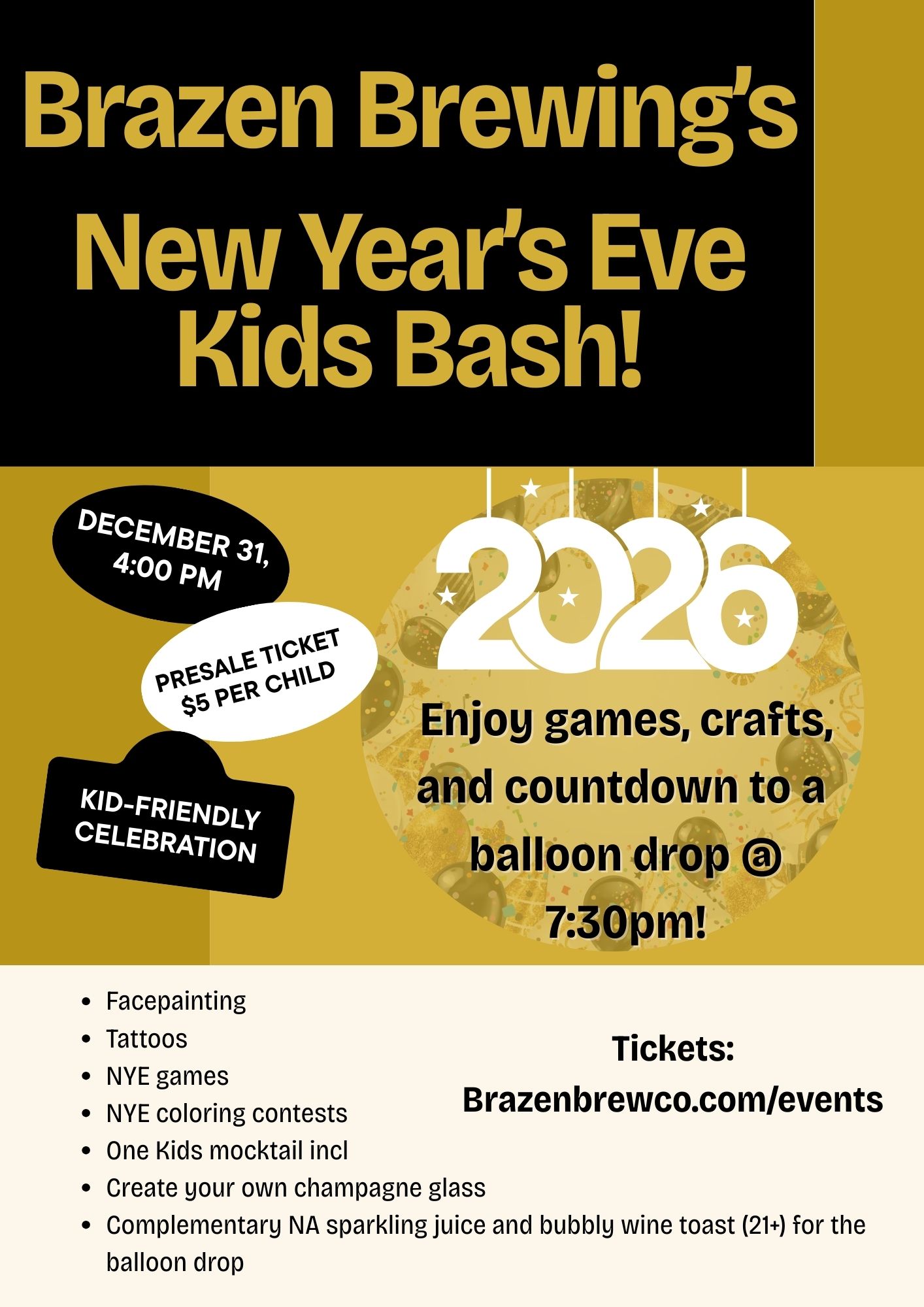 Celebrate the New Year at a kid friendly event! Balloon drop @ 7:30pm. NYE crafts and games. Ticket includes a kids mocktail.